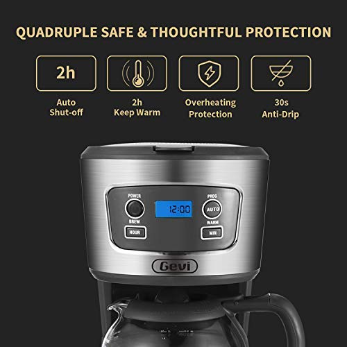 Gevi Coffee Maker, 5 Cups Small Programmable Coffee Machine with Reusable Filter, Keep Warm Function and Auto Shut-off, Black