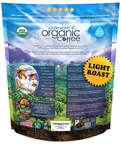 2LB Subtle Earth Organic Coffee – Light Roast – Whole Bean – Organic Arabica Coffee – (2 lb) Bag