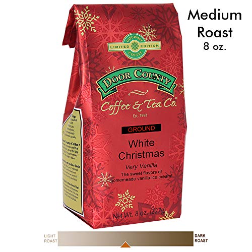 Door County Coffee, Holiday Flavored Coffee, White Christmas, Vanilla Ice Cream Flavored Coffee, Medium Roast, Ground Coffee, 8 oz Bag