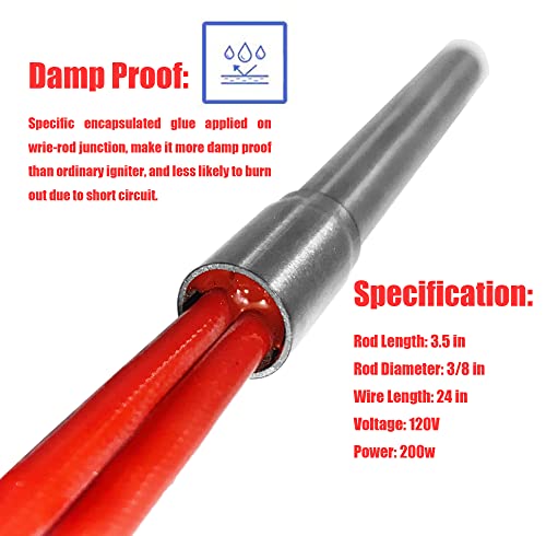 • DAMP PROOF: Specific encapsulated glue applied on wrie-rod junction, make it more damp proof than ordinary igniter, and less likely to burn out due to short circuit.