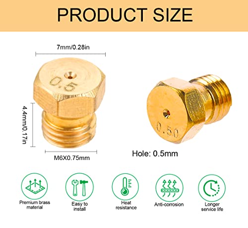 • ?[Perfect Size]: Thread: M6*0.75mm, Nozzle hole: 0.5mm, Hexagon: 7mm, Total height: 8mm.