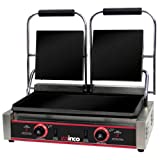 • Sandwich Grill, electric, countertop, double, 19″ x 9″ flat cast iron grill surface, hinged top plate, power/ready lights, removable crumb/grease tray, adjustable thermostats up to 600° F, stainless steel, 120v/60/1-ph, (2) 15 amp, (2) 1750 watts, ETL-Sanitation, cETLus