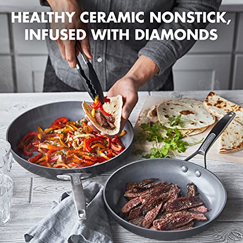 GreenPan Paris Pro Hard Anodized Healthy Ceramic Nonstick, 10″ and 12″ Frying Pan Skillet Set, PFAS-Free, Dishwasher Safe, Grey