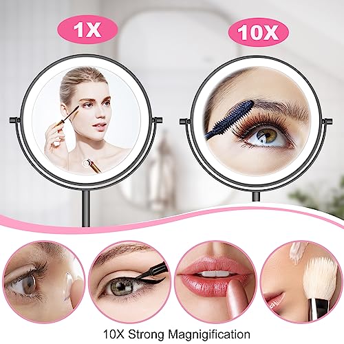 LOVESPEJO Lighted Magnifying Mirror?8″ Rechargeable Double Sided Lighted Makeup Mirror with 3 Colors, 1x/10x 360°Rotation Touchscreen Cosmetic Mirror, Brightness Adjustable Vanity Mirror?Matte Black