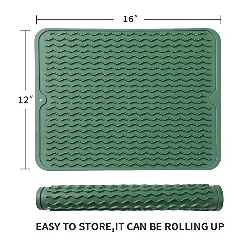 MicoYang Silicone Dish Drying Mat for Multiple Usage,Easy clean,Eco-friendly,Heat-resistant Silicone Mat for Kitchen Counter or Sink,Refrigerator or drawer liner Green L 16 inches x 12 inches