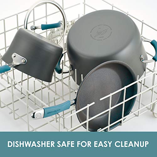 Rachael Ray Cucina Hard Anodized Nonstick Cookware Pots and Pans Set, 12 Piece, Gray with Blue Handles