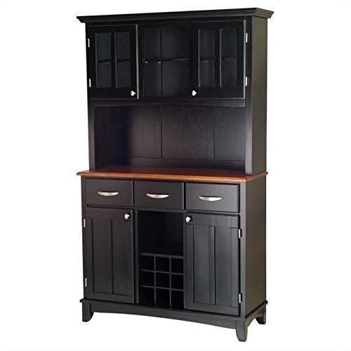 Buffet of Buffets Black with Cottage Oak Wood Top with Hutch by Home Styles, Large Server with Cottage Oak Wood Top & Hutch