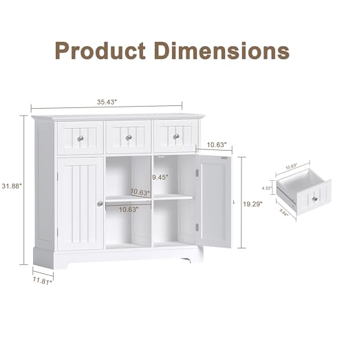 ChooChoo Buffet Cabinet, Coffee Bar with Drawers and Doors, Sideboard Storage with Shelves for Kitchen, Dining Room, Living Room, White