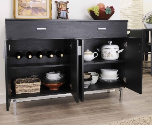 Home » Dining Cabinets » ioHOMES Knox Modern Buffet Server Sideboard with Two Doors Bottom Cabinet, Removable Wine Holder and 2 Drawers On Metal Glides, Black