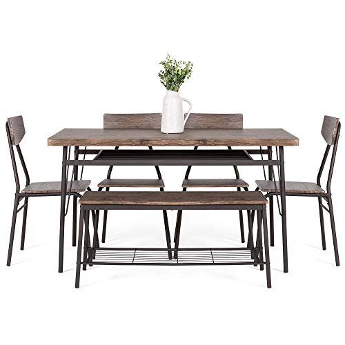 Best Choice Products 6-Piece 55in Modern Home Dining Set w/Storage Racks, Rectangular Table, Bench, 4 Chairs – Brown