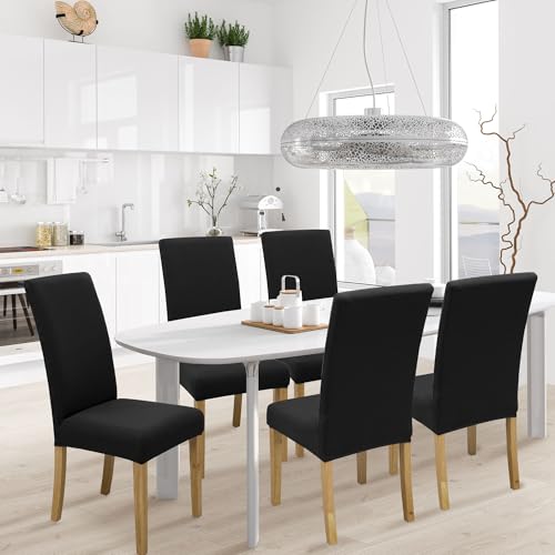 BIETYONE Dining Chair Cover,Dining Room Chair Covers Set of 6,Stretch Kitchen Chair Cover,Washable Dining Chair Cover,Parsons Chair Slipcovers Protective,for Home,Restaurant,Banquet(Black)