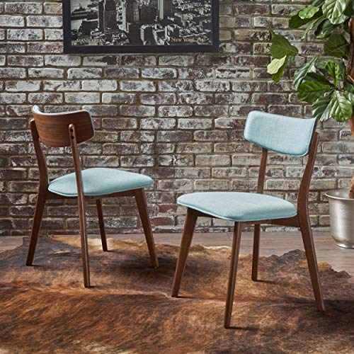 Christopher Knight Home Chazz Mid-Century Fabric Dining Chairs with Natural Walnut Finished Frame, 2-Pcs Set, Mint / Natural Walnut Finish