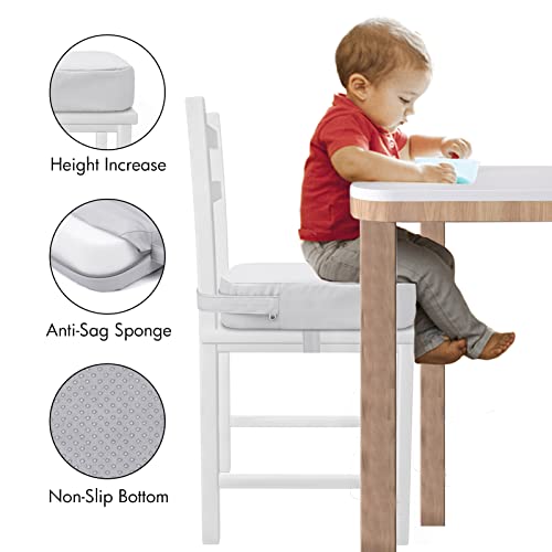 ?SAFE AND ADJUSTABLE?- The Booster seat for dinning table consists of two straps. An adjustable strap with a buckle is tied under the chair, and the other strap is directly tied to the back of the chair, so that the booster can be well fixed on the chair. In addition, the bottom of the seat cushion adopts a non-slip design, which further prevents the seat cushion from moving and ensures the safety of the child.