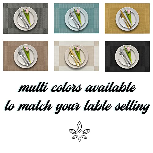 More Décor Dining Table Placemats, Washable Heat-Resistant PVC Vinyl Table Mats for Dining Room and Kitchen, Anti-Slip – Set of 6 – Grey