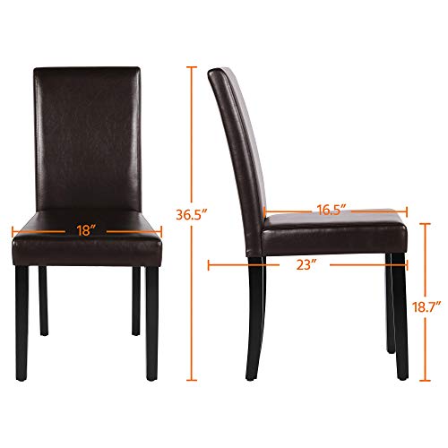 Yaheetech Dining Chair Living Dining Room PU Cushion Diner Chair Kitchen Dining Chairs with Solid Wood Legs Set of 4, Brown