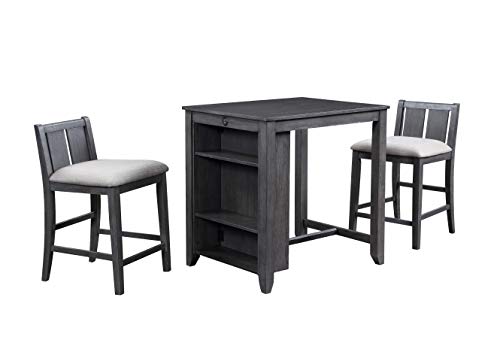 New Classic Furniture Heston Storage Counter Table Set with Two Chairs, 36-Inch, Gray