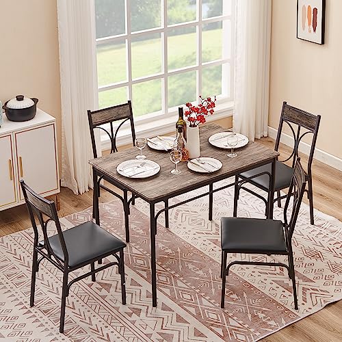 VECELO 5-Piece Indoor Modern Rectangular Table Kitchen, Dinette, Breakfast Nook, Dining Set for 4, Retro Brown