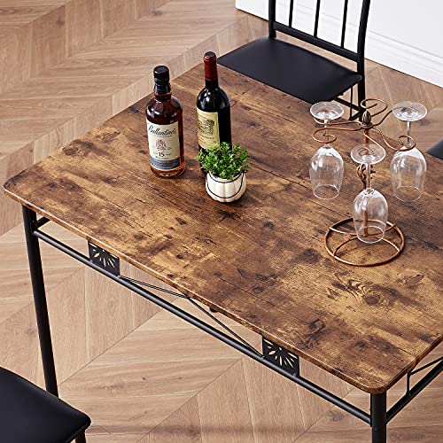 VECELO Kitchen Dining Room Table Sets for 4, 5 Piece Metal and Wood Rectangular Breakfast Nook, Dinette with Chairs, Retro-Brown