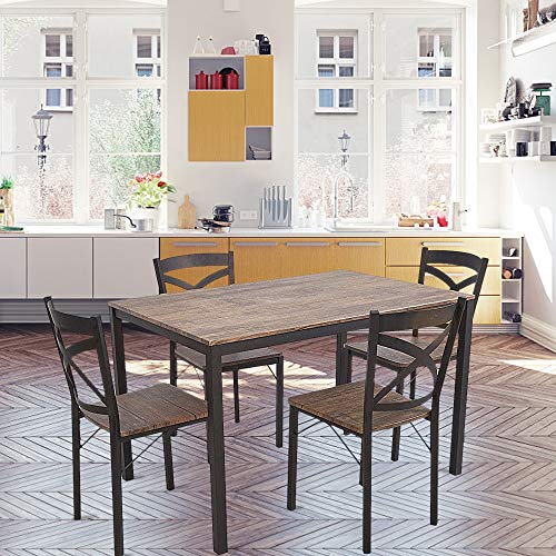 Dporticus 5-Piece Dining Set Industrial Style Wooden Kitchen Table and Chairs with Metal Legs- Espresso