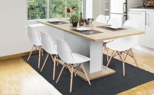 FurnitureR 8 Seater Extendable funtional Dining Table High Gloss White Wood with Hiding Storage Space, Only Table (Beech)