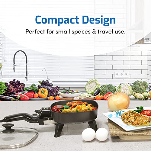 Elite Gourmet EFS-400# Personal Stir Fry Griddle Pan, Rapid Heat Up, 600 Watts Non-stick Electric Skillet with Tempered Glass Lid, Black
