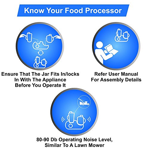 Safety Interlocking System – Blades operate only when the lid is securely attached to the bowl