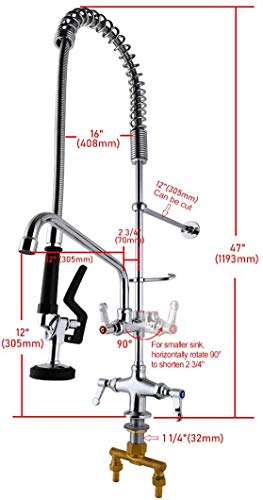Maxsen Deck Mounted Type Commercial Kitchen Sink Faucet Pre Rinse with Add-On Spout for Food Service Commercial Kitchens Restaurant Hotel Application Tap (MS-5801BDP)