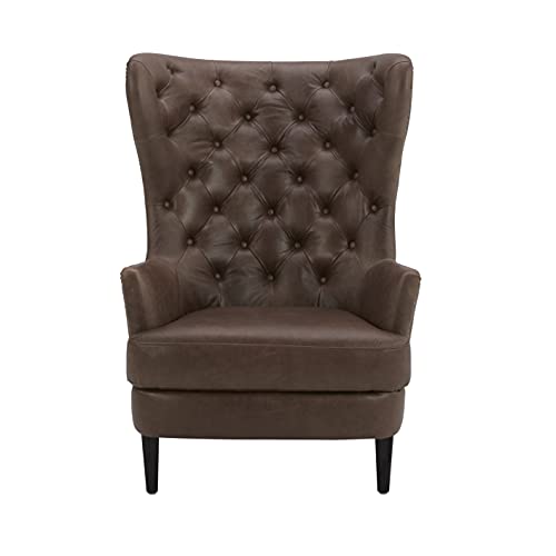 Amazon Brand – Stone & Beam Hansberry Wingback Leather Living Room Accent Chair, 32.7”W, Dark Brown