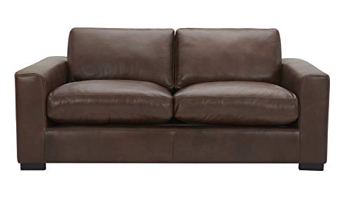 Amazon Brand – Stone & Beam Westview Extra-Deep Down-Filled Leather Loveseat Sofa Couch, 75.6″W, Brown