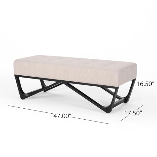 Ball & Cast Modern Tufted Upholstered Entryway Bench Ottoman, 47.5″ Padded Bed of End Stool Seating with Faux Wooden Frame, for Living Room Bedroom Kitchen, Beige