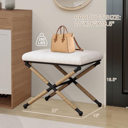 [STYLISH AND VERSATILE DESIGN] Ball & Cast Upholstered Square Ottoman with X-Metal Frame is a perfect blend of functionality and style. This unique foot stool features rope-wrapped legs, adding an organic texture that enhances any space. Ideal for use as a Foot Stool for Bedroom End of Bed, this ottoman also serves as additional seating for the Entryway, Hallway, or Front of Window, seamlessly fitting various room themes.