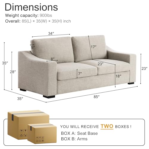 ELUCHANG Oversized 85″ Deep Seat Sofa, Modern Couches for Living Room, 3 Seater Natural Linen Sofa, Upholstered Cushion & Detachable Cover, Comfy Sofa Couch for Apartment, Oatmeal