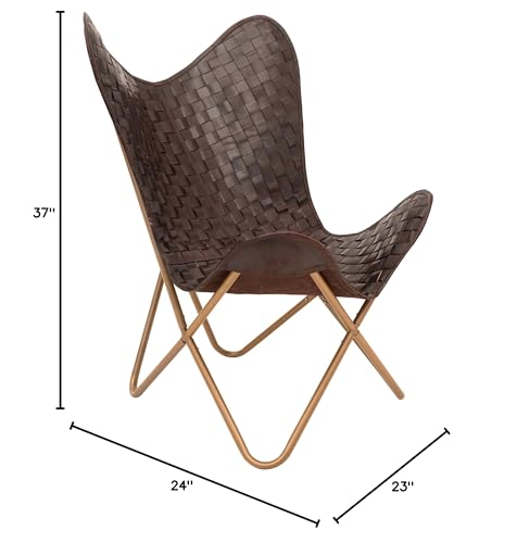Leather Living Room Chairs-Butterfly Chair Brown Leather Butterfly Chair-Handmade with Powder Coated Folding Iron Frame (Cover with Folding Frame) (Golden Iron Frame)
