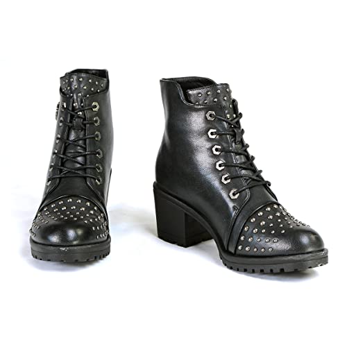 Milwaukee Leather MBL9426 Women’s Distress Black Rocker Fashion Boots with Studded Instep – 8