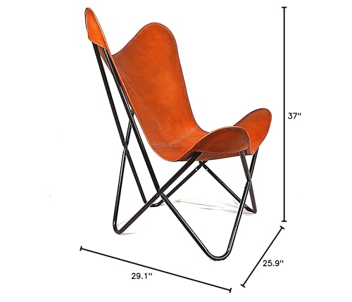 Shy Shy Let’s Touch The Sky Leather Butterfly Arm Chair for Living Room Furniture – Mid Century Modern Accent Home Decor Lounge Chairs (Tan Cover with Black Folding Frame)