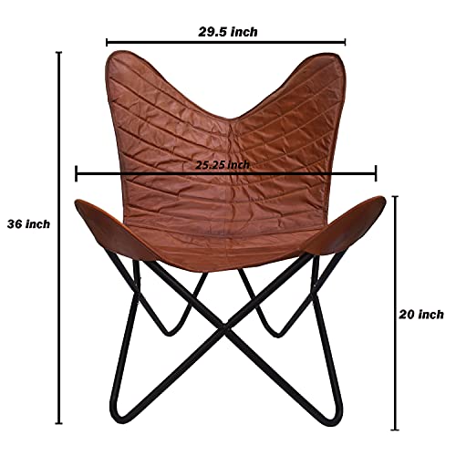 Home » Furniture » Shy Shy Let’s Touch The Sky Leather Butterfly Chair Retro Vintage Industrial Leather Brown Ribbed Seat Black Base with Padded Tan Brown Chair