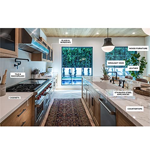 Use it on WOOD, LEATHER, MARBLE, GRANITE, WROUGHT IRON, STAINLESS STEEL, GLASS AND MIRRORS