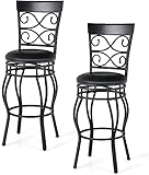 WATERJOY Retro Bar Chairs Set of 2, 360 Degree Swivel Padded Bar Stools Leather Seat Bistro Dining Kitchen Pub Metal Chairs