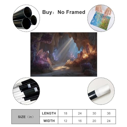 XAHOR Fantasy Crystal Cavern Wall Decor, Dramatic Light Beams on Vibrant Gemstone Rocks Canvas Art Poster And Wall Art Picture Print Modern Family Bedroom Decor Posters Unframe 16x24inch