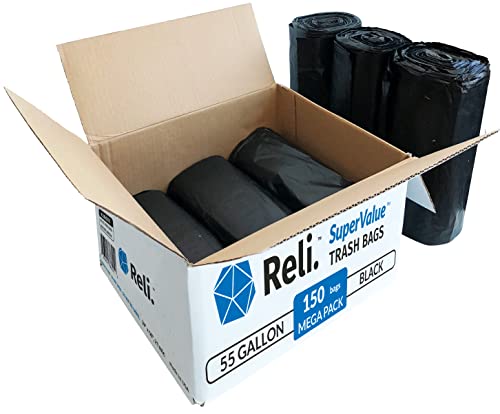 Reli. Easy Grab 55-60 Gallon Trash Bags | 150 Count | Made in USA | Heavy Duty | Bulk | SuperValue | Black Multi-Use Garbage Bags