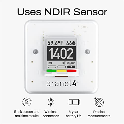 SAF Aranet4 Home: Wireless Indoor Air Quality Monitor for Home, Office or School (CO2, Temperature, Humidity and More) Portable, Battery Powered, E-Ink Screen, App for Configuration & Data History