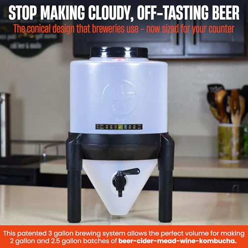 MADE IN THE USA – This small batch fermenter is the first of its kind, includes everything you need, quality and long lasting durability! The conical design reduces the amount of trub with your finished beer, leaving you with a cleaner, clearer, better tasting recipe.