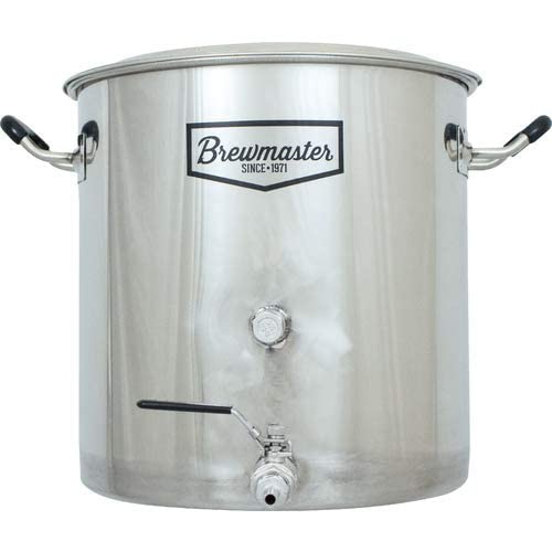 8.5 Gallon Stainless Steel Brew Kettle w/ thermometer port, stainless ball valve, internal volume markers, Silicone handle grips