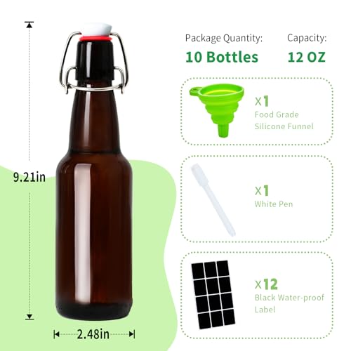 ?Product Includes?: 10 x 12oz flip top glass bottles, 1 x collapsible silicone funnel, 1 x erasable pen, 12 x stickers.You can mark the content and filling time of each bottle.