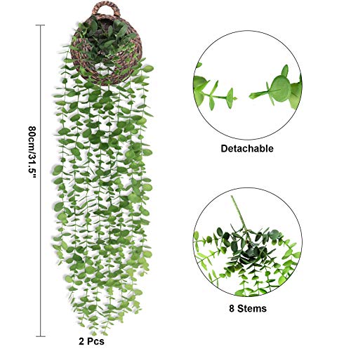 2 Pack Fake Hanging Plants Eucalyptus Garland Artificial Greenery Vines for Room Garden Home Wall Indoor Outdoor Decor (Basket Not Included)