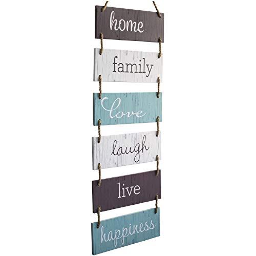 Excello Global Products Large Hanging Wall Sign: Rustic Wooden Decor (Home, Family, Love, Laugh, Live, Happiness) Hanging Wood Wall Decoration (11.75″ x 32″)
