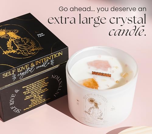 Large Crystal Candles for Women – 12oz Soy Wood Wick Candles That Crackle. Scented, Non-Toxic, Luxury Aromatherapy. Unique Meditation Spiritual Gifts for Women