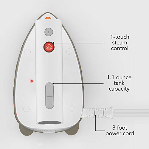 • QUICK HEAT UP TIME: The 1.1 ounce water tank heats up in one minute, equipped with 1-touch steam control and 3 temperature settings for various fabric types. Fill included measuring cup with water up to maximum mark.