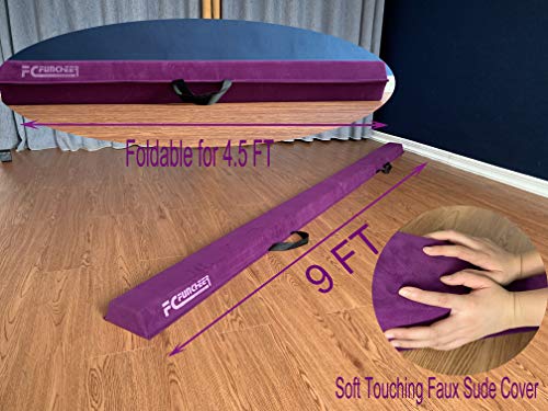 6FT/9FT Folding Balance Beam for Kids ages 3-39- Foldable Gymnastics Floor Beam,Anti-Slip ,Carrying Bag, Faux Suede Covered,EVA foam,Gymnastics Equipment for Kids Training At Home,School,Gym Center
