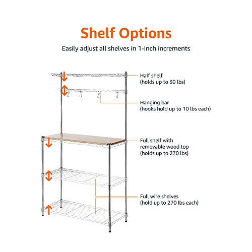 Amazon Basics Kitchen Storage Baker’s Rack with Wood Table, Chrome/Wood (36L x 14W x 63.4H)